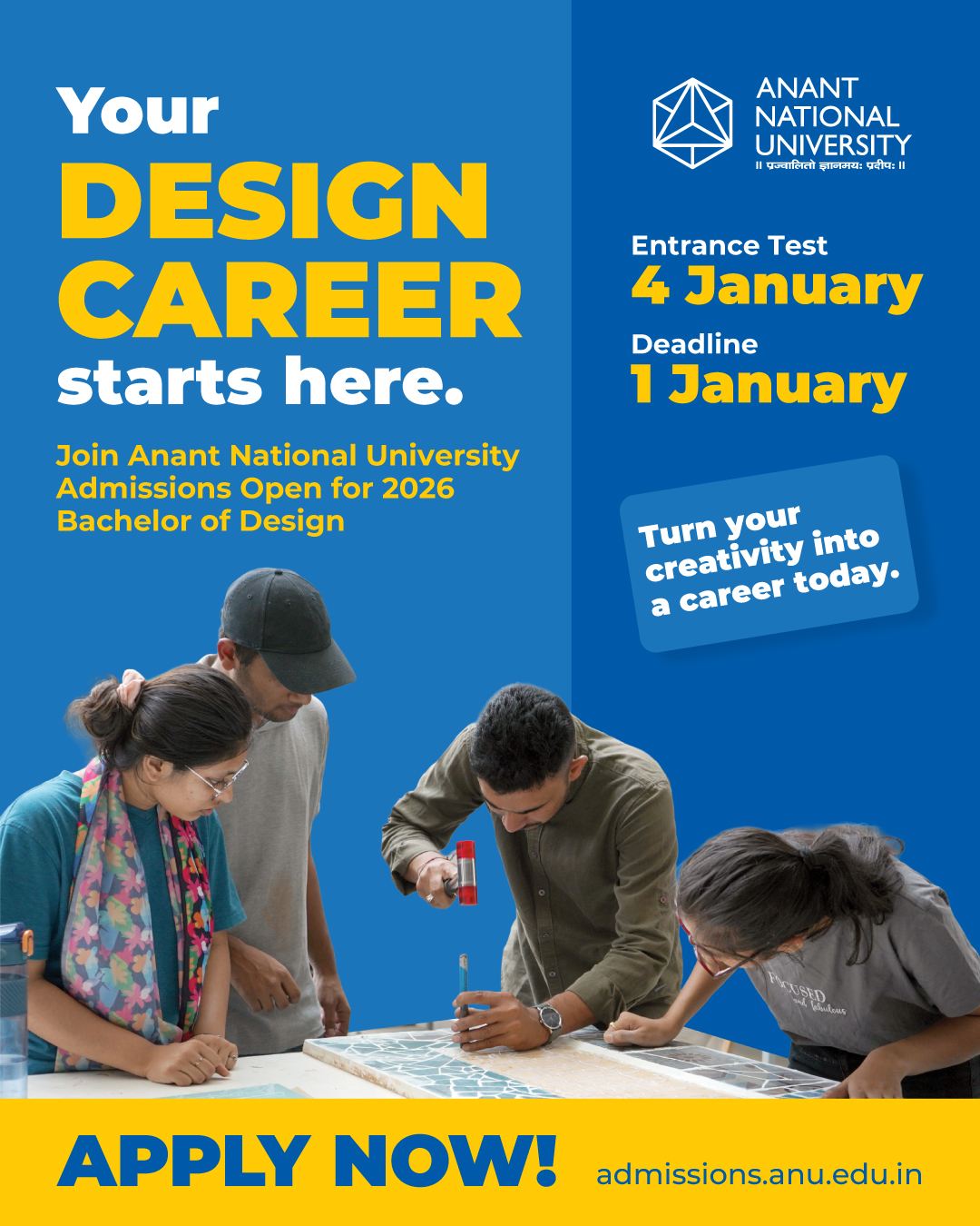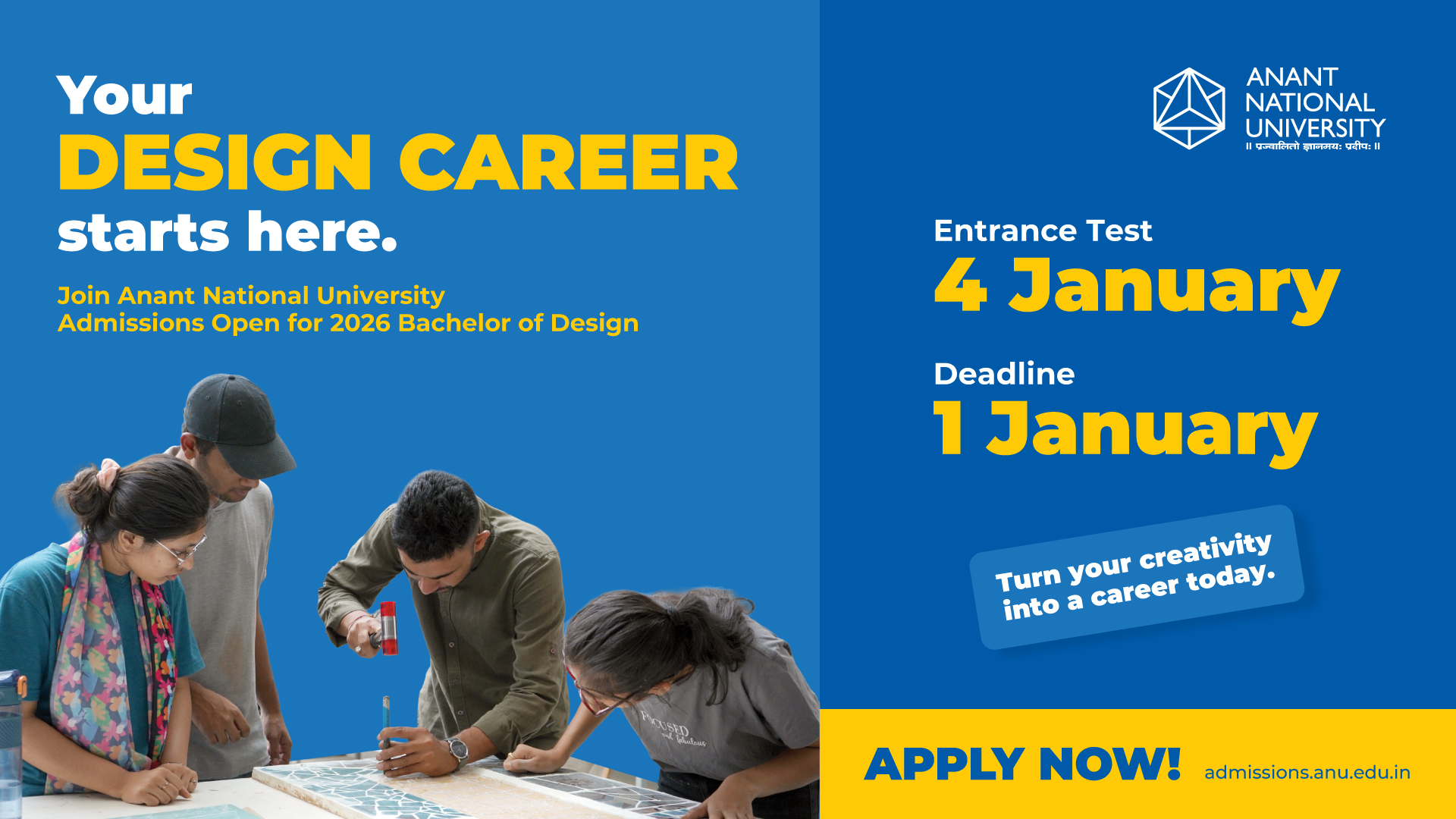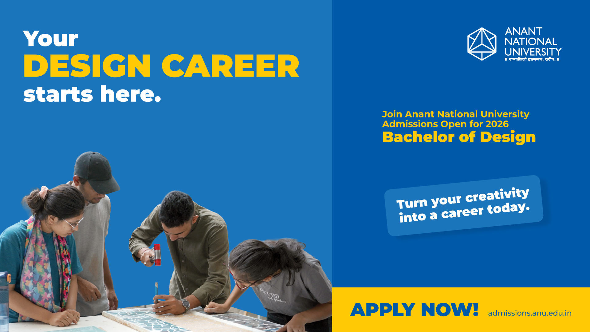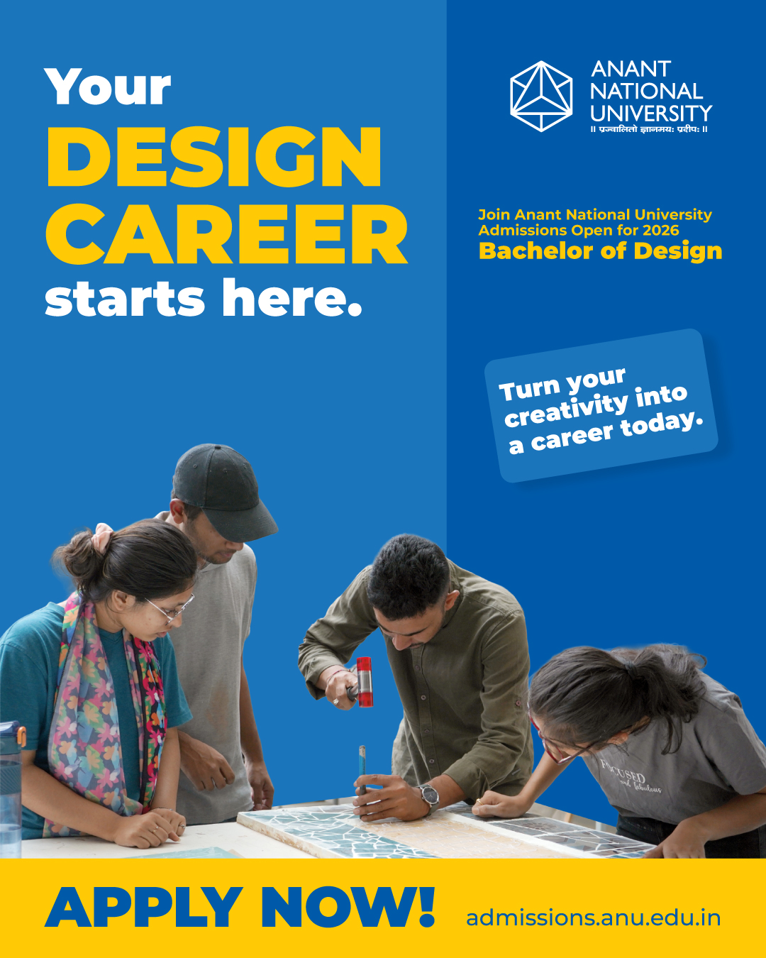 Anant National University -India’s premier design university, aims to equip designers with tools of the digital age and a multidisciplinary approach to bring sustainable solutions to the challenges of the contemporary world. Industries across sectors are seeking designers who possess knowledge of multiple domains and can use their interdisciplinary expertise in creating solutions for a better future. At Anant, we aim to mould such designers, who possess technical skills, a holistic understanding of the context and are also good communicators, collaborative workers and critical thinkers.