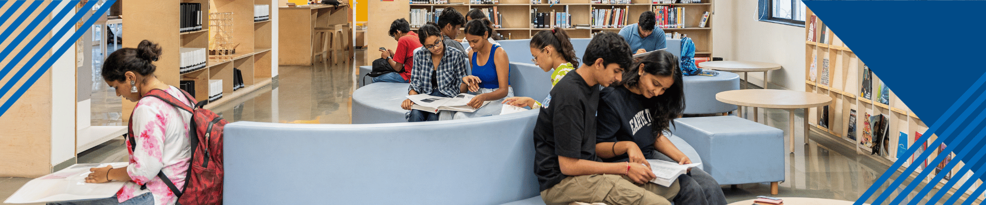 Learning Commons, Anant National University’s ultra-modern academic resource centre, has been designed to enhance study, research and teaching practices. Designed by Boston-based Sasaki Associates, Inc., and spanning 4520 sq feet, it offers a contemporary reading space, a high-tech cyberspace and an integrated information desk. The Learning Commons team provides research support, offering guidance on resources and conducting user education programmes on online tools and plagiarism check software.