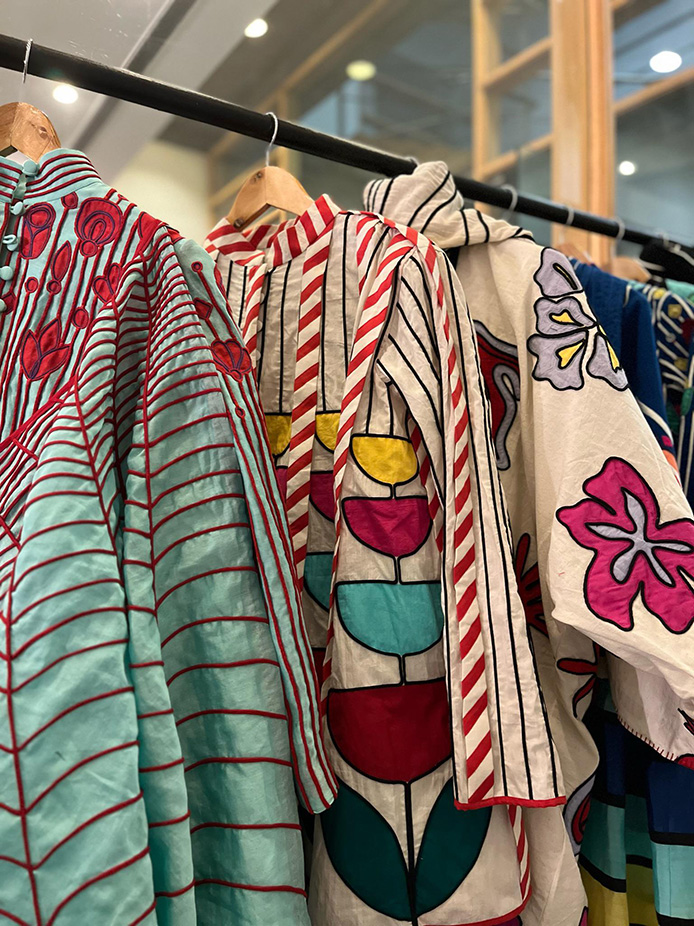 Ka-Sha wanted to create a unique, vibrant and captivating summer collection. Under the mentorship of Prof Risha Roy, Associate Professor and Lead, Sustainable Fashion and Textile Design, School of Design and sponsored by Ka-Sha, by Karishma Sahani Khan, Sanskruti designed ‘Bagh’ that seamlessly incorporated floral motifs while retaining the brand’s signature style of geometric patterns along with applique to serve the purpose.
