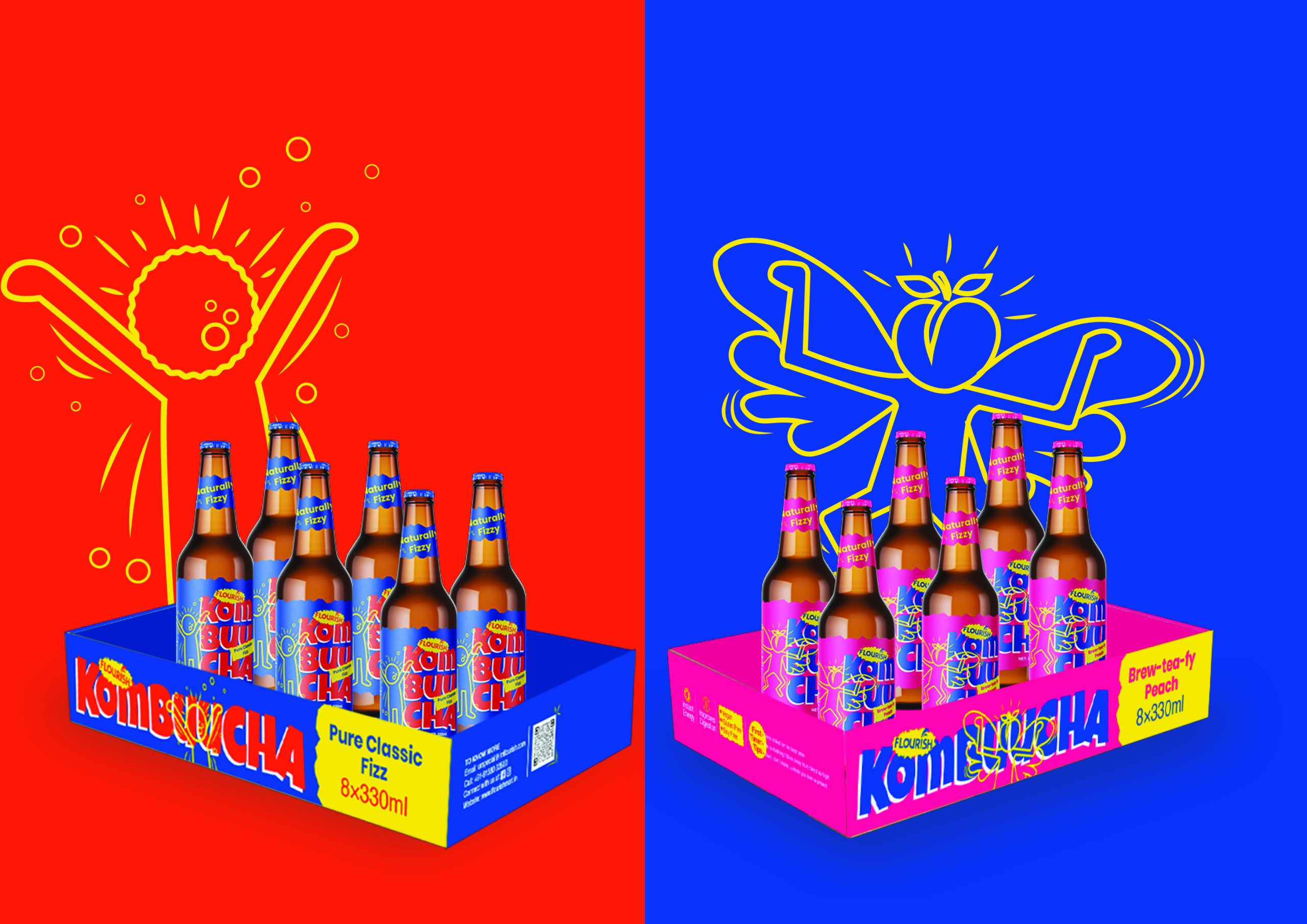 Kombuucha is a vibrant, experiential kombucha brand that captures energy, adventure and fun through bold colours, abstract shapes and playful characters inspired by Keith Haring. Each flavour has a distinct personality, creating a visually engaging and approachable experience. The project explores innovative packaging design that connects with a younger audience while raising awareness about kombucha. Combining storytelling, creativity and consumer experience, the project transforms a beverage into a memorable brand journey that is both expressive and immersive.
