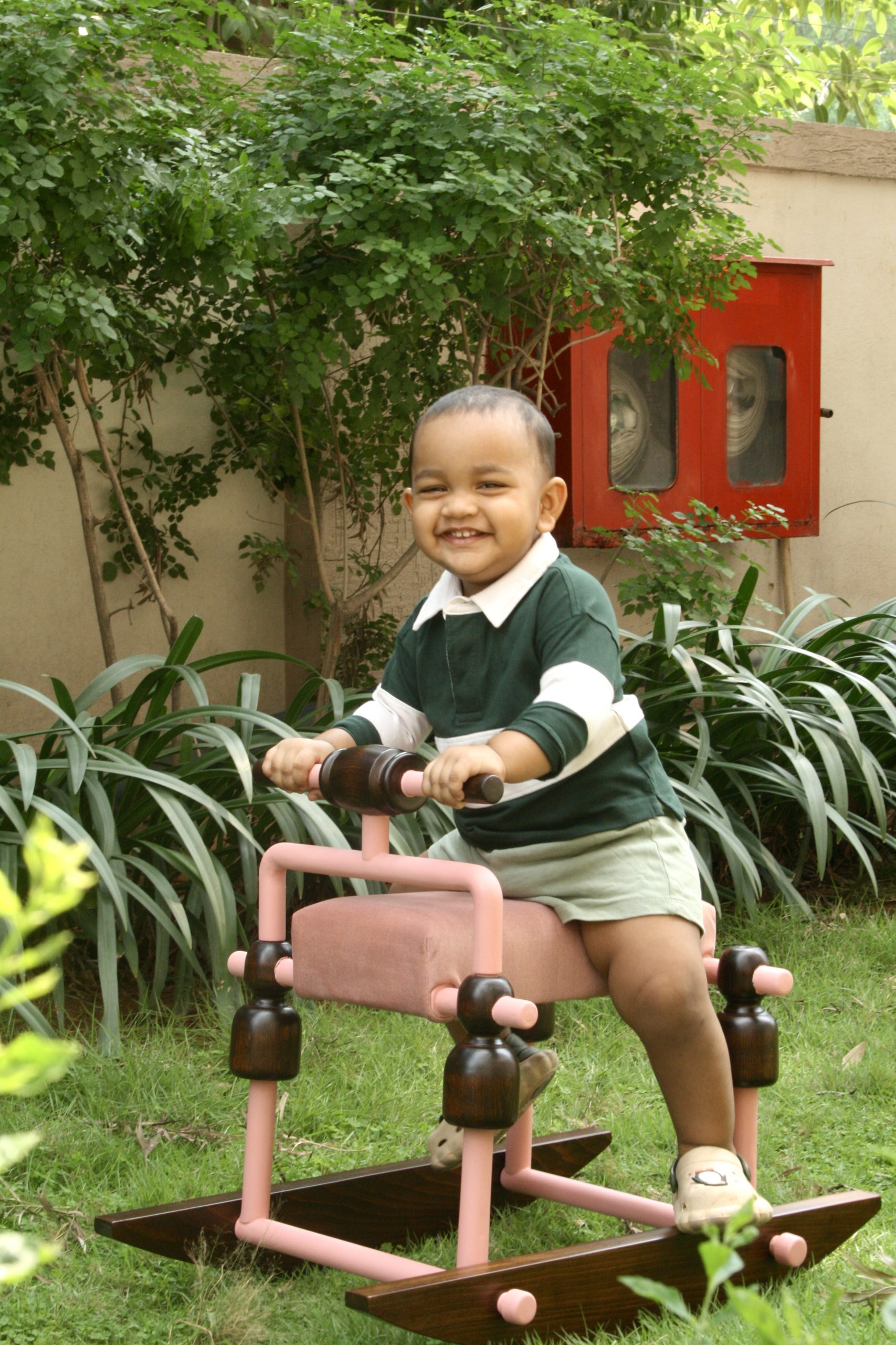 Tharala, drawn from Sanskrit and Telugu, embodies motion as emotion, the sway of a curtain or ripple of still water. More than a chair, it is a cradle of memories and a rhythm of rest. Hand-turned in the spirit of Channapatna craft, its curves carry warmth, tradition, and care. Designed to transform into a low footstool, it adapts across generations, fostering belonging and continuity. Tharala is not just for rocking the body, but for soothing the soul.